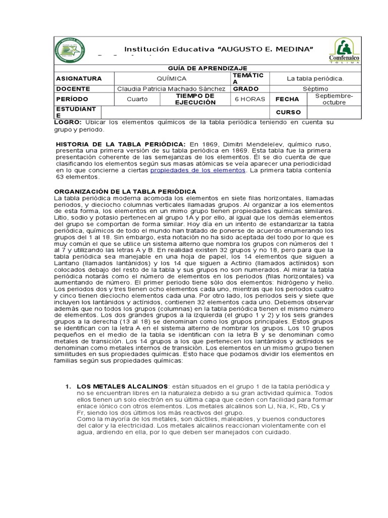 Http Www Iedmab Edu Co Wp Content Uploads Guias Aprendizaje 3 Septimo Pdf Quimica Grado Septimo Arturo Pizarro Pdf