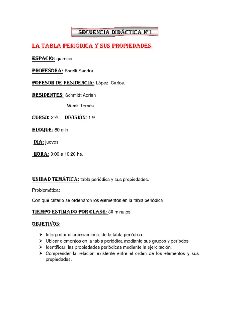 Secuencia Didactica Quimica Pdf Tabla Periodica Atomos
