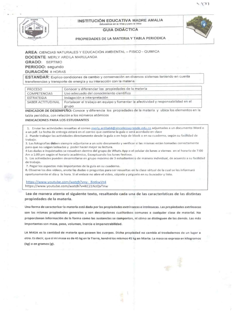 Guia Propiedades De La Materia Y Tabla Periodica Pdf